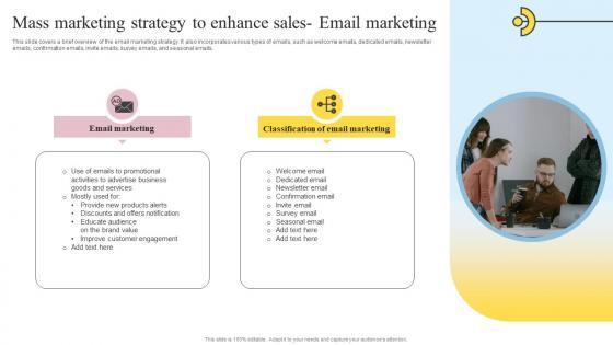 This slide covers a brief overview of the email marketing strategy. It also incorporates various types of emails, such as welcome emails, dedicated emails, newsletter emails, confirmation emails, invite emails, survey emails, and seasonal emails. Make sure to capture your audiences attention in your business displays with our gratis customizable Mass Marketing Strategy To Enhance Sales Email Definitive Guide On Mass Advertising Slides Pdf. These are great for business strategies, office conferences, capital raising or task suggestions. If you desire to acquire more customers for your tech business and ensure they stay satisfied, create your own sales presentation with these plain slides. This slide covers a brief overview of the email marketing strategy. It also incorporates various types of emails, such as welcome emails, dedicated emails, newsletter emails, confirmation emails, invite emails, survey emails, and seasonal emails.