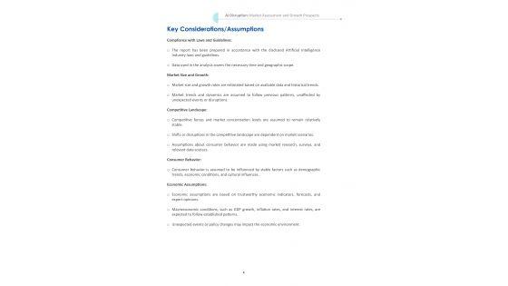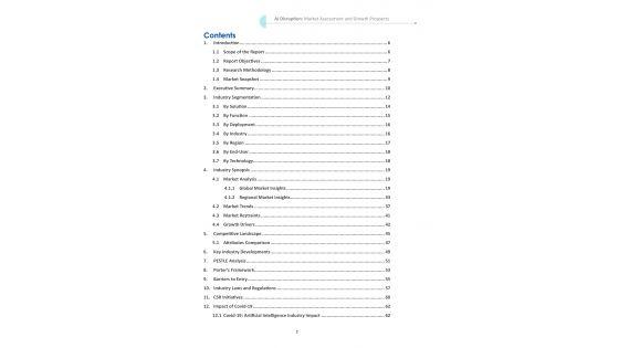 This AI Disruption Market Assessment And Growth Prospects Pdf Word Document is a primer on how to capitalize on business opportunities through planning, innovation, and market intelligence. The content-ready format of the complete deck will make your job as a decision-maker a lot easier. Use this ready-made PowerPoint Template to help you outline an extensive and legible plan to capture markets and grow your company on the right path, at an exponential pace. What is even more amazing is that this presentation is completely editable and 100 percent customizable. This seventy six slide complete deck helps you impress a roomful of people with your expertise in business and even presentation. Craft such a professional and appealing presentation for that amazing recall value. Download now. Our AI Disruption Market Assessment And Growth Prospects Pdf Word Document are topically designed to provide an attractive backdrop to any subject. Use them to look like a presentation pro.