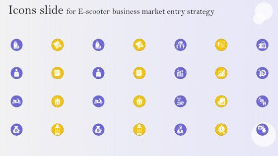 Help your business to create an attention-grabbing presentation using our Icons Slide For E Scooter Business Market Entry Strategy set of slides. The slide contains innovative icons that can be flexibly edited. Choose this Icons Slide For E Scooter Business Market Entry Strategy template to create a satisfactory experience for your customers. Go ahead and click the download button. Our Icons Slide For E Scooter Business Market Entry Strategy are topically designed to provide an attractive backdrop to any subject. Use them to look like a presentation pro.