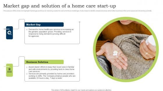 The purpose of this slide is to highlight market gap and focus on devising solution to overcome those challenges. It also helps to identify unexplored areas which other business in the same space are not serving currently. Welcome to our selection of the Go To Market Strategy Market Gap And Solution Of A Home Care Start Up Mockup Pdf These are designed to help you showcase your creativity and bring your sphere to life. Planning and Innovation are essential for any business that is just starting out. This collection contains the designs that you need for your everyday presentations. All of our PowerPoints are 100 percent editable, so you can customize them to suit your needs. This multi-purpose template can be used in various situations. Grab these presentation templates today. The purpose of this slide is to highlight market gap and focus on devising solution to overcome those challenges. It also helps to identify unexplored areas which other business in the same space are not serving currently.