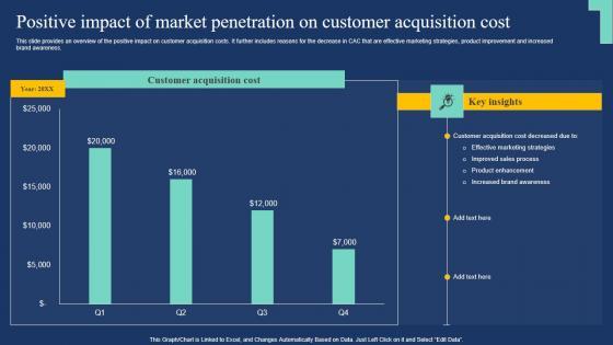 This slide provides an overview of the positive impact on customer acquisition costs. It further includes reasons for the decrease in CAC that are effective marketing strategies, product improvement and increased brand awareness. There are so many reasons you need a Positive Impact Of Market Penetration On Customer Acquisition Cost Diagrams PDF. The first reason is you can not spend time making everything from scratch, Thus, Slidegeeks has made presentation templates for you too. You can easily download these templates from our website easily.