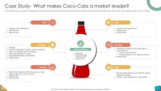 This template covers a case study including the various reasons why the Coca-Cola brand is the market leader. It includes various factors for competitive edge, such as style, skills, strategy, structure, systems, staff, etc. Whether you have daily or monthly meetings, a brilliant presentation is necessary. Brand Influence Case Study What Makes Coco Cola A Market Leader Strategy SS V can be your best option for delivering a presentation. Represent everything in detail using Brand Influence Case Study What Makes Coco Cola A Market Leader Strategy SS V and make yourself stand out in meetings. The template is versatile and follows a structure that will cater to your requirements. All the templates prepared by Slidegeeks are easy to download and edit. Our research experts have taken care of the corporate themes as well. So, give it a try and see the results. This template covers a case study including the various reasons why the Coca-Cola brand is the market leader. It includes various factors for competitive edge, such as style, skills, strategy, structure, systems, staff, etc.