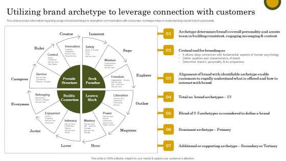 This slide provides information regarding usage of brand archetype to strengthen communication with consumers. Archetype helps in understanding overall brands personality. Want to ace your presentation in front of a live audience Our Utilizing Brand Archetype Leverage Apple Branding Strategy To Become Market Leader Introduction Pdf can help you do that by engaging all the users towards you. Slidegeeks experts have put their efforts and expertise into creating these impeccable powerpoint presentations so that you can communicate your ideas clearly. Moreover, all the templates are customizable, and easy to edit and downloadable. Use these for both personal and commercial use. This slide provides information regarding usage of brand archetype to strengthen communication with consumers. Archetype helps in understanding overall brands personality.