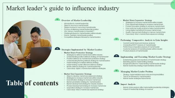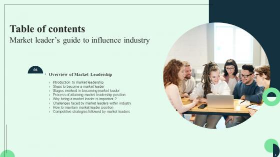 If you are looking for a format to display your unique thoughts, then the professionally designed Table Of Contents For Market Leaders Guide To Influence Industry Background Pdf is the one for you. You can use it as a Google Slides template or a PowerPoint template. Incorporate impressive visuals, symbols, images, and other charts. Modify or reorganize the text boxes as you desire. Experiment with shade schemes and font pairings. Alter, share or cooperate with other people on your work. Download Table Of Contents For Market Leaders Guide To Influence Industry Background Pdf and find out how to give a successful presentation. Present a perfect display to your team and make your presentation unforgettable. Our Table Of Contents For Market Leaders Guide To Influence Industry Background Pdf are topically designed to provide an attractive backdrop to any subject. Use them to look like a presentation pro.