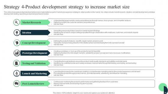This slide showcases product development process implemented as part of market size expansion strategy to retain position in the market. Key steps include market research, ideation, concept development, prototype development, testing, launching product and post launch review. Get a simple yet stunning designed Market Leaders Guide To Influence Strategy 4 Product Development Strategy To Increase Infographics Pdf. It is the best one to establish the tone in your meetings. It is an excellent way to make your presentations highly effective. So, download this PPT today from Slidegeeks and see the positive impacts. Our easy-to-edit Market Leaders Guide To Influence Strategy 4 Product Development Strategy To Increase Infographics Pdf can be your go-to option for all upcoming conferences and meetings. So, what are you waiting for Grab this template today. This slide showcases product development process implemented as part of market size expansion strategy to retain position in the market. Key steps include market research, ideation, concept development, prototype development, testing, launching product and post launch review.