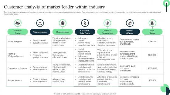 This slide showcases an analysis of various customer groups catered by the market leader within the industry. Evaluation parameters include characteristics, demographics, customer pain points, customer expectations and customer behaviors. Whether you have daily or monthly meetings, a brilliant presentation is necessary. Market Leaders Guide To Influence Customer Analysis Of Market Leader Within Industry Background Pdf can be your best option for delivering a presentation. Represent everything in detail using Market Leaders Guide To Influence Customer Analysis Of Market Leader Within Industry Background Pdf and make yourself stand out in meetings. The template is versatile and follows a structure that will cater to your requirements. All the templates prepared by Slidegeeks are easy to download and edit. Our research experts have taken care of the corporate themes as well. So, give it a try and see the results. This slide showcases an analysis of various customer groups catered by the market leader within the industry. Evaluation parameters include characteristics, demographics, customer pain points, customer expectations and customer behaviors.