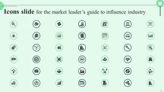 Introducing our well designed Icons Slide For The Market Leaders Guide To Influence Industry Infographics Pdf set of slides. The slide displays editable icons to enhance your visual presentation. The icons can be edited easily. So customize according to your business to achieve a creative edge. Download and share it with your audience. Our Icons Slide For The Market Leaders Guide To Influence Industry Infographics Pdf are topically designed to provide an attractive backdrop to any subject. Use them to look like a presentation pro.