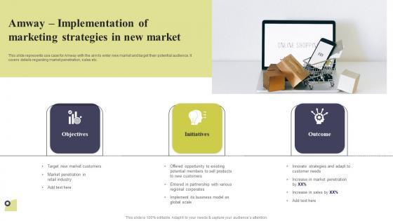 This slide represents use case for Amway with the aim to enter new market and target their potential audience. It covers details regarding market penetration, sales etc. If you are looking for a format to display your unique thoughts, then the professionally designed Comprehensive Guide For Multi Level Amway Implementation Of Marketing Strategies Mockup PDF is the one for you. You can use it as a Google Slides template or a PowerPoint template. Incorporate impressive visuals, symbols, images, and other charts. Modify or reorganize the text boxes as you desire. Experiment with shade schemes and font pairings. Alter, share or cooperate with other people on your work. Download Comprehensive Guide For Multi Level Amway Implementation Of Marketing Strategies Mockup PDF and find out how to give a successful presentation. Present a perfect display to your team and make your presentation unforgettable.