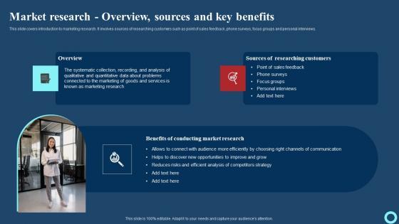 This slide covers introduction to marketing research. It involves sources of researching customers such as point of sales feedback, phone surveys, focus groups and personal interviews. Coming up with a presentation necessitates that the majority of the effort goes into the content and the message you intend to convey. The visuals of a PowerPoint presentation can only be effective if it supplements and supports the story that is being told. Keeping this in mind our experts created Market Research Overview Sources And Key Benefits Information PDF to reduce the time that goes into designing the presentation. This way, you can concentrate on the message while our designers take care of providing you with the right template for the situation.