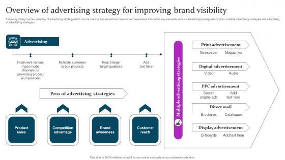 Following slide provides summary of advertising strategy which can be used by business for increase brand awareness. It includes key elements such as advertising strategy description, multiple advertising strategies and advertising of advertising strategies. Do you have to make sure that everyone on your team knows about any specific topic I yes, then you should give Overview Of Advertising Strategy Marketing Mix Communication Guide Client Topics Pdf a try. Our experts have put a lot of knowledge and effort into creating this impeccable Overview Of Advertising Strategy Marketing Mix Communication Guide Client Topics Pdf. You can use this template for your upcoming presentations, as the slides are perfect to represent even the tiniest detail. You can download these templates from the Slidegeeks website and these are easy to edit. So grab these today Following slide provides summary of advertising strategy which can be used by business for increase brand awareness. It includes key elements such as advertising strategy description, multiple advertising strategies and advertising of advertising strategies.