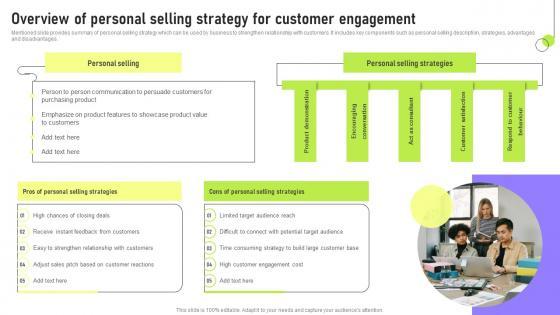 Mentioned slide provides summary of personal selling strategy which can be used by business to strengthen relationship with customers. It includes key components such as personal selling description, strategies, advantages and disadvantages. There are so many reasons you need a Overview Of Personal Selling Strategy Deployment Of Marketing Communication Guidelines Pdf. The first reason is you can not spend time making everything from scratch, Thus, Slidegeeks has made presentation templates for you too. You can easily download these templates from our website easily. Mentioned slide provides summary of personal selling strategy which can be used by business to strengthen relationship with customers. It includes key components such as personal selling description, strategies, advantages and disadvantages.