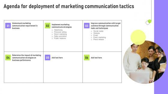 Boost your pitch with our creative Agenda For Deployment Of Marketing Communication Tactics Information Pdf. Deliver an awe inspiring pitch that will mesmerize everyone. Using these presentation templates you will surely catch everyones attention. You can browse the ppts collection on our website. We have researchers who are experts at creating the right content for the templates. So you do not have to invest time in any additional work. Just grab the template now and use them. Our Agenda For Deployment Of Marketing Communication Tactics Information Pdf are topically designed to provide an attractive backdrop to any subject. Use them to look like a presentation pro.
