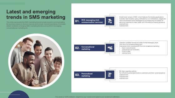 Do you have to make sure that everyone on your team knows about any specific topic. I yes, then you should give Latest And Emerging Trends In SMS Marketing Ideas PDF a try. Our experts have put a lot of knowledge and effort into creating this impeccable Latest And Emerging Trends In SMS Marketing Ideas PDF. You can use this template for your upcoming presentations, as the slides are perfect to represent even the tiniest detail. You can download these templates from the Slidegeeks website and these are easy to edit. So grab these today.