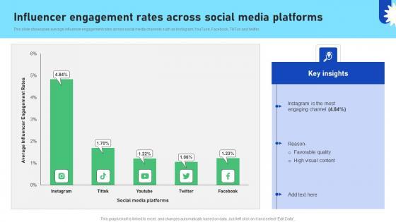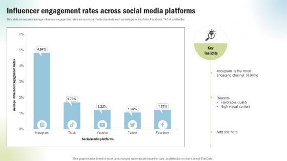 This slide showcases average influencer engagement rates across social media channels such as Instagram, YouTube, Facebook, TikTok and twitter. The best PPT templates are a great way to save time, energy, and resources. Slidegeeks have 100 percent editable powerpoint slides making them incredibly versatile. With these quality presentation templates, you can create a captivating and memorable presentation by combining visually appealing slides and effectively communicating your message. Download Improving Business Marketing Performance Influencer Engagement Rates Across CRP DK SS V from Slidegeeks and deliver a wonderful presentation. This slide showcases average influencer engagement rates across social media channels such as Instagram, YouTube, Facebook, TikTok and twitter.