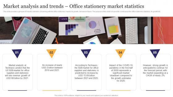 This slide provides a glimpse of industry overview concerning with the office stationery market, its growth, demand in future. The purpose of this slide is to provide a brief about the office stationery statistics, its growth etc. This Market Analysis And Trends Office Stationery Business Plan Go To Market Strategy Download Pdf is perfect for any presentation, be it in front of clients or colleagues. It is a versatile and stylish solution for organizing your meetings. The Market Analysis And Trends Office Stationery Business Plan Go To Market Strategy Download Pdf features a modern design for your presentation meetings. The adjustable and customizable slides provide unlimited possibilities for acing up your presentation. Slidegeeks has done all the homework before launching the product for you. So, do not wait, grab the presentation templates today This slide provides a glimpse of industry overview concerning with the office stationery market, its growth, demand in future. The purpose of this slide is to provide a brief about the office stationery statistics, its growth etc.