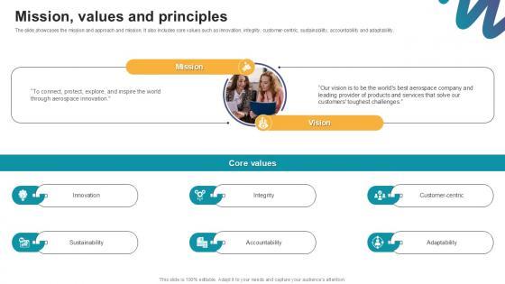 The slide showcases the mission and approach and mission. It also includes core values such as innovation, integrity, customer-centric, sustainability, accountability and adaptability. This Mission Values And Principles Digital Marketings Strategies PPT Template CP SS V is perfect for any presentation, be it in front of clients or colleagues. It is a versatile and stylish solution for organizing your meetings. The Mission Values And Principles Digital Marketings Strategies PPT Template CP SS V features a modern design for your presentation meetings. The adjustable and customizable slides provide unlimited possibilities for acing up your presentation. Slidegeeks has done all the homework before launching the product for you. So, do not wait, grab the presentation templates today The slide showcases the mission and approach and mission. It also includes core values such as innovation, integrity, customer-centric, sustainability, accountability and adaptability.