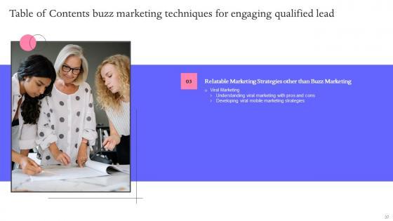 Slidegeeks is one of the best resources for PowerPoint templates. You can download easily and regulate Buzz Marketing Techniques For Engaging Qualified Lead Table Of Contents Elements Pdf for your personal presentations from our wonderful collection. A few clicks is all it takes to discover and get the most relevant and appropriate templates. Use our Templates to add a unique zing and appeal to your presentation and meetings. All the slides are easy to edit and you can use them even for advertisement purposes. Our Buzz Marketing Techniques For Engaging Qualified Lead Table Of Contents Elements Pdf are topically designed to provide an attractive backdrop to any subject. Use them to look like a presentation pro.