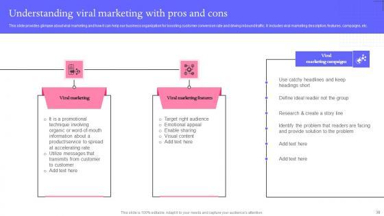 Use this Buzz Marketing Techniques For Engaging Qualified Lead Complete Deck to ensure the business world gets to know you as a presentation expert with tremendous recall value. With its focus on providing the worlds best designs to highlight business ideas that have the potential to change the world, this PPT Template is sure to win you clients. The complete deck in Fifty eight slides is a compendium of information, structured in a manner that provides the best framework for a presentation. Use this completely editable and customizable presentation to make an impact and improve your order book. Download now. Our Buzz Marketing Techniques For Engaging Qualified Lead Complete Deck are topically designed to provide an attractive backdrop to any subject. Use them to look like a presentation pro.