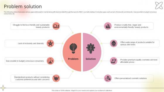 The following slide showcases various gaps addressed in market along with desired state through the launch of B2C cosmetic startup. It includes gaps such as lack of inclusivity and diversity, Inaccessible to budget-conscious consumers, etc.Coming up with a presentation necessitates that the majority of the effort goes into the content and the message you intend to convey. The visuals of a PowerPoint presentation can only be effective if it supplements and supports the story that is being told. Keeping this in mind our experts created Problem Solution Beauty Product Company Go To Market Strategy GTM SS V to reduce the time that goes into designing the presentation. This way, you can concentrate on the message while our designers take care of providing you with the right template for the situation. The following slide showcases various gaps addressed in market along with desired state through the launch of B2C cosmetic startup. It includes gaps such as lack of inclusivity and diversity, Inaccessible to budget-conscious consumers, etc.