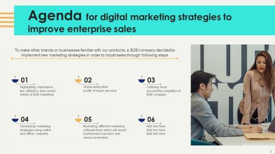 There are so many reasons you need a Agenda For Digital Marketing Strategies To Improve Enterprise Sales Formats Pdf. The first reason is you can not spend time making everything from scratch, Thus, Slidegeeks has made presentation templates for you too. You can easily download these templates from our website easily. Our Agenda For Digital Marketing Strategies To Improve Enterprise Sales Formats Pdf are topically designed to provide an attractive backdrop to any subject. Use them to look like a presentation pro.
