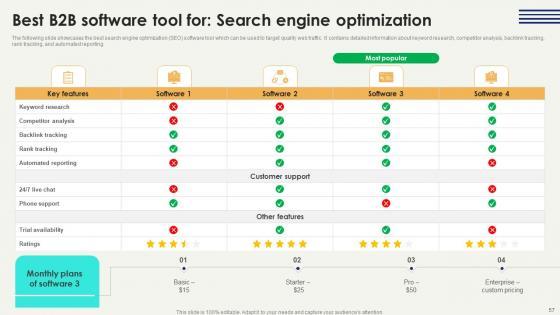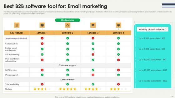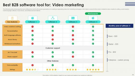 The following slide showcases the comparative assessment of various influencer marketing software tools. The comparison is made on the basis of key features such as brand management, campaign management, content management, influencer relationship management, and social media monitoring. Do you have an important presentation coming up Are you looking for something that will make your presentation stand out from the rest Look no further than Best B2B Software Tool Digital Marketing Strategies To Improve Enterprise Sales Portrait Pdf. With our professional designs, you can trust that your presentation will pop and make delivering it a smooth process. And with Slidegeeks, you can trust that your presentation will be unique and memorable. So why wait Grab Best B2B Software Tool Digital Marketing Strategies To Improve Enterprise Sales Portrait Pdf today and make your presentation stand out from the rest The following slide showcases the comparative assessment of various influencer marketing software tools. The comparison is made on the basis of key features such as brand management, campaign management, content management, influencer relationship management, and social media monitoring.