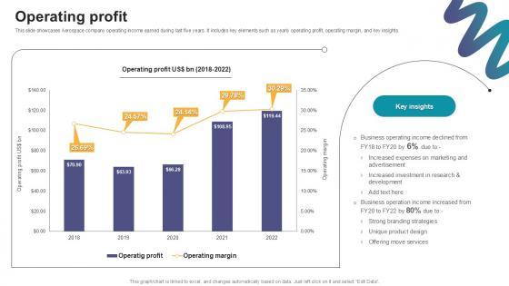 This slide showcases Aerospace company operating income earned during last five years. It includes key elements such as yearly operating profit, operating margin, and key insights. Are you searching for a Operating Profit Digital Marketings Strategies PPT Slide CP SS V that is uncluttered, straightforward, and original Its easy to edit, and you can change the colors to suit your personal or business branding. For a presentation that expresses how much effort you have put in, this template is ideal With all of its features, including tables, diagrams, statistics, and lists, its perfect for a business plan presentation. Make your ideas more appealing with these professional slides. Download Operating Profit Digital Marketings Strategies PPT Slide CP SS V from Slidegeeks today. This slide showcases Aerospace company operating income earned during last five years. It includes key elements such as yearly operating profit, operating margin, and key insights.