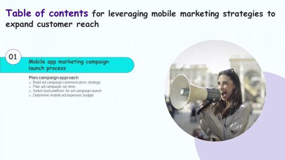 If your project calls for a presentation, then Slidegeeks is your go to partner because we have professionally designed, easy to edit templates that are perfect for any presentation. After downloading, you can easily edit Leveraging Mobile Marketing Strategies To Expand Table Of Contents Infographics Pdf and make the changes accordingly. You can rearrange slides or fill them with different images. Check out all the handy templates Our Leveraging Mobile Marketing Strategies To Expand Table Of Contents Infographics Pdf are topically designed to provide an attractive backdrop to any subject. Use them to look like a presentation pro.
