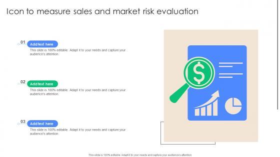 Showcasing this set of slides titled Icon To Measure Sales And Market Risk Evaluation Information Pdf. The topics addressed in these templates are Icon Measure Sales, Market Risk Evaluation. All the content presented in this PPT design is completely editable. Download it and make adjustments in color, background, font etc. as per your unique business setting. Our Icon To Measure Sales And Market Risk Evaluation Information Pdf are topically designed to provide an attractive backdrop to any subject. Use them to look like a presentation pro.