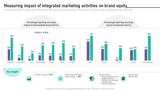 This slide represents a graph showcasing the impact of effective brand marketing programs on various brand equity metrics. It analyzes impact on awareness, commitment, trust, differentiation, quality, fame and image. Boost your pitch with our creative Brand Equity Management To Raise Measuring Impact Of Integrated Marketing Activities. Deliver an awe-inspiring pitch that will mesmerize everyone. Using these presentation templates you will surely catch everyones attention. You can browse the ppts collection on our website. We have researchers who are experts at creating the right content for the templates. So you do not have to invest time in any additional work. Just grab the template now and use them. This slide represents a graph showcasing the impact of effective brand marketing programs on various brand equity metrics. It analyzes impact on awareness, commitment, trust, differentiation, quality, fame and image.
