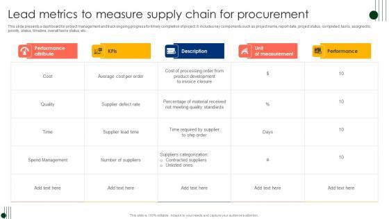 This slide presents a dashboard for project management and track ongoing progress for timely completion of project. It includes key components such as project name, report date, project status, completed, tasks, assigned to, priority, status, timeline, overall tasks status, etc. Showcasing this set of slides titled Lead Metrics To Measure Supply Chain For Procurement Ppt Professional Design Inspiration Pdf. The topics addressed in these templates are Project Status, Completed, Tasks, Assigned To, Priority. All the content presented in this PPT design is completely editable. Download it and make adjustments in color, background, font etc. as per your unique business setting. This slide presents a dashboard for project management and track ongoing progress for timely completion of project. It includes key components such as project name, report date, project status, completed, tasks, assigned to, priority, status, timeline, overall tasks status, etc.