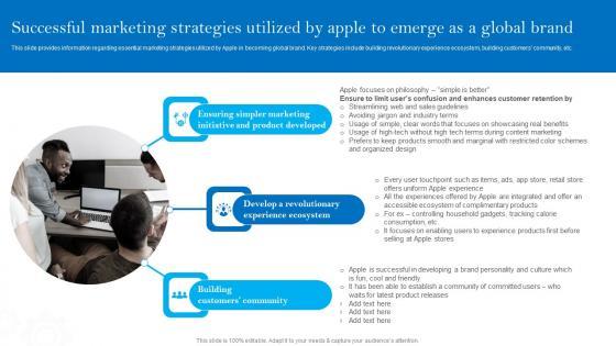 This slide provides information regarding essential marketing strategies utilized by Apple in becoming global brand. Key strategies include building revolutionary experience ecosystem, building customers community, etc. Want to ace your presentation in front of a live audience Our Apples Brand Promotional Measures Successful Marketing Strategies Utilized By Apple Rules Pdf can help you do that by engaging all the users towards you.. Slidegeeks experts have put their efforts and expertise into creating these impeccable powerpoint presentations so that you can communicate your ideas clearly. Moreover, all the templates are customizable, and easy-to-edit and downloadable. Use these for both personal and commercial use. This slide provides information regarding essential marketing strategies utilized by Apple in becoming global brand. Key strategies include building revolutionary experience ecosystem, building customers community, etc.