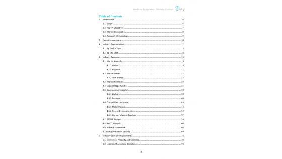 This Medical Equipments Industry Outlook Pdf Word Document is designed to help you retain your audiences attention. This content-ready PowerPoint Template enables you to take your audience on a journey and share information in a way that is easier to recall. It helps you highlight the crucial parts of your work so that the audience does not get saddled with information download. This eighty seven slide PPT Deck comes prepared with the graphs and charts you could need to showcase your information through visuals. You only need to enter your own data in them. Download this editable PowerPoint Theme and walk into that meeting with confidence. Our Medical Equipments Industry Outlook Pdf Word Document are topically designed to provide an attractive backdrop to any subject. Use them to look like a presentation pro.