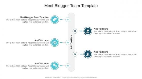 Introducing our well-designed Meet Blogger Team Template In Powerpoint And Google Slides Cpb. This PowerPoint design presents information on topics like Meet Blogger Team Template. As it is predesigned it helps boost your confidence level. It also makes you a better presenter because of its high-quality content and graphics. This PPT layout can be downloaded and used in different formats like PDF, PNG, and JPG. Not only this, it is available in both Standard Screen and Widescreen aspect ratios for your convenience. Therefore, click on the download button now to persuade and impress your audience. Our Meet Blogger Team Template In Powerpoint And Google Slides Cpb are topically designed to provide an attractive backdrop to any subject. Use them to look like a presentation pro.