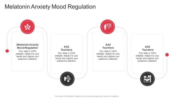 Introducing our well designed Melatonin Anxiety Mood Regulation In Powerpoint And Google Slides Cpb. This PowerPoint design presents information on topics like Melatonin Anxiety Mood Regulation. As it is predesigned it helps boost your confidence level. It also makes you a better presenter because of its high-quality content and graphics. This PPT layout can be downloaded and used in different formats like PDF, PNG, and JPG. Not only this, it is available in both Standard Screen and Widescreen aspect ratios for your convenience. Therefore, click on the download button now to persuade and impress your audience. Our Melatonin Anxiety Mood Regulation In Powerpoint And Google Slides Cpb are topically designed to provide an attractive backdrop to any subject. Use them to look like a presentation pro.