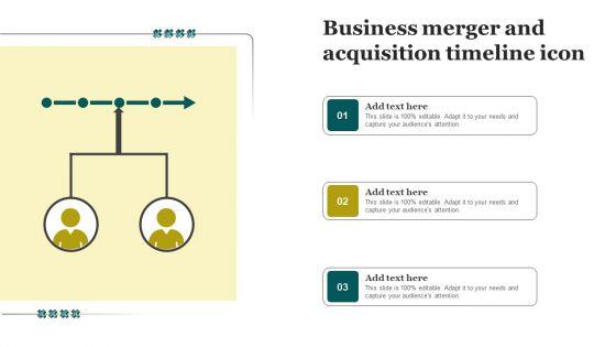 Showcasing this set of slides titled Company Merger And Acquisition Timeline Icon Guidelines PDF. The topics addressed in these templates are Company Merger, Acquisition Timeline Icon. All the content presented in this PPT design is completely editable. Download it and make adjustments in color, background, font etc. as per your unique business setting.