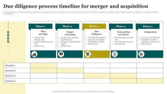 This Timeline For Merger And Acquisition Ppt PowerPoint Presentation Complete Deck With Slides acts as backup support for your ideas, vision, thoughts, etc. Use it to present a thorough understanding of the topic. This PPT slideshow can be utilized for both in house and outside presentations depending upon your needs and business demands. Entailing seventeen slides with a consistent design and theme, this template will make a solid use case. As it is intuitively designed, it suits every business vertical and industry. All you have to do is make a few tweaks in the content or any other component to design unique presentations. The biggest advantage of this complete deck is that it can be personalized multiple times once downloaded. The color, design, shapes, and other elements are free to modify to add personal touches. You can also insert your logo design in this PPT layout. Therefore a well thought and crafted presentation can be delivered with ease and precision by downloading this Timeline For Merger And Acquisition Ppt PowerPoint Presentation Complete Deck With Slides PPT slideshow. Our Timeline For Merger And Acquisition Ppt PowerPoint Presentation Complete Deck With Slides are topically designed to provide an attractive backdrop to any subject. Use them to look like a presentation pro.