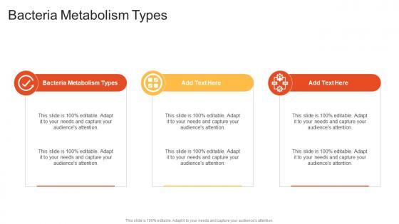 Introducing our well designed Bacteria Metabolism Types In Powerpoint And Google Slides Cpb. This PowerPoint design presents information on topics like Bacteria Metabolism Types. As it is predesigned it helps boost your confidence level. It also makes you a better presenter because of its high quality content and graphics. This PPT layout can be downloaded and used in different formats like PDF, PNG, and JPG. Not only this, it is available in both Standard Screen and Widescreen aspect ratios for your convenience. Therefore, click on the download button now to persuade and impress your audience. Our Bacteria Metabolism Types In Powerpoint And Google Slides Cpb are topically designed to provide an attractive backdrop to any subject. Use them to look like a presentation pro.