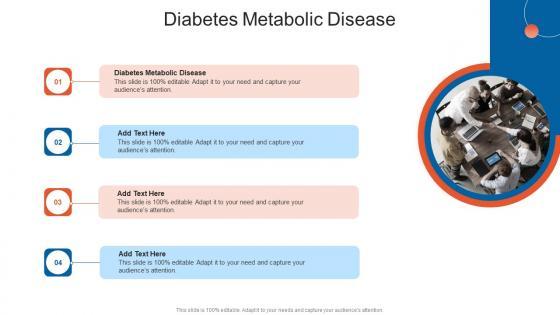 Introducing our well-designed Diabetes Metabolic Disease In Powerpoint And Google Slides Cpb. This PowerPoint design presents information on topics like Diabetes Metabolic Disease. As it is predesigned it helps boost your confidence level. It also makes you a better presenter because of its high-quality content and graphics. This PPT layout can be downloaded and used in different formats like PDF, PNG, and JPG. Not only this, it is available in both Standard Screen and Widescreen aspect ratios for your convenience. Therefore, click on the download button now to persuade and impress your audience. Our Diabetes Metabolic Disease In Powerpoint And Google Slides Cpb are topically designed to provide an attractive backdrop to any subject. Use them to look like a presentation pro.