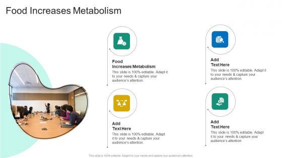 Presenting our innovatively designed set of slides titled Food Increases Metabolism In Powerpoint And Google Slides Cpb. This completely editable PowerPoint graphic exhibits Food Increases Metabolism that will help you convey the message impactfully. It can be accessed with Google Slides and is available in both standard screen and widescreen aspect ratios. Apart from this, you can download this well structured PowerPoint template design in different formats like PDF, JPG, and PNG. So, click the download button now to gain full access to this PPT design. Our Food Increases Metabolism In Powerpoint And Google Slides Cpb are topically designed to provide an attractive backdrop to any subject. Use them to look like a presentation pro.