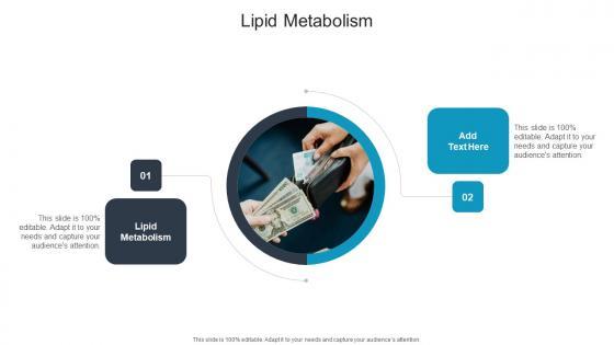 Introducing our well designed Lipid Metabolism In Powerpoint And Google Slides Cpb. This PowerPoint design presents information on topics like Lipid Metabolism. As it is predesigned it helps boost your confidence level. It also makes you a better presenter because of its high-quality content and graphics. This PPT layout can be downloaded and used in different formats like PDF, PNG, and JPG. Not only this, it is available in both Standard Screen and Widescreen aspect ratios for your convenience. Therefore, click on the download button now to persuade and impress your audience. Our Lipid Metabolism In Powerpoint And Google Slides Cpb are topically designed to provide an attractive backdrop to any subject. Use them to look like a presentation pro.