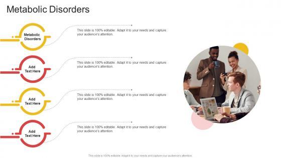 Introducing our well designed Metabolic Disorders In Powerpoint And Google Slides Cpb This PowerPoint design presents information on topics like Metabolic Disorders As it is predesigned it helps boost your confidence level. It also makes you a better presenter because of its high quality content and graphics. This PPT layout can be downloaded and used in different formats like PDF, PNG, and JPG. Not only this, it is available in both Standard Screen and Widescreen aspect ratios for your convenience. Therefore, click on the download button now to persuade and impress your audience. Our Metabolic Disorders In Powerpoint And Google Slides Cpb are topically designed to provide an attractive backdrop to any subject. Use them to look like a presentation pro.