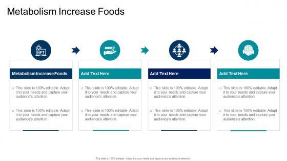 Introducing our well designed Foods Increase Metabolism In Powerpoint And Google Slides Cpb This PowerPoint design presents information on topics like Foods Increase Metabolism As it is predesigned it helps boost your confidence level. It also makes you a better presenter because of its high quality content and graphics. This PPT layout can be downloaded and used in different formats like PDF, PNG, and JPG. Not only this, it is available in both Standard Screen and Widescreen aspect ratios for your convenience. Therefore, click on the download button now to persuade and impress your audience. Our Foods Increase Metabolism In Powerpoint And Google Slides Cpb are topically designed to provide an attractive backdrop to any subject. Use them to look like a presentation pro.