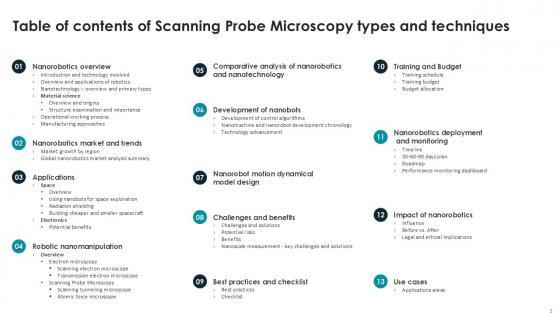 This Scanning Probe Microscopy types and techniques PPT Sample is a primer on how to capitalize on business opportunities through planning, innovation, and market intelligence. The content-ready format of the complete deck will make your job as a decision-maker a lot easier. Use this ready-made PowerPoint Template to help you outline an extensive and legible plan to capture markets and grow your company on the right path, at an exponential pace. What is even more amazing is that this presentation is completely editable and 100 percent customizable. This seventy nine slide complete deck helps you impress a roomful of people with your expertise in business and even presentation. Craft such a professional and appealing presentation for that amazing recall value. Download now. Our Scanning Probe Microscopy types and techniques PPT Sample are topically designed to provide an attractive backdrop to any subject. Use them to look like a presentation pro.