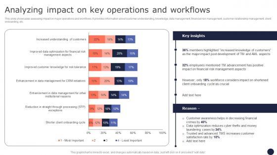 This slide showcases assessing impact on major operations and workflows. It provides information about customer understanding, knowledge, data management, financial risk management, customer relationship management, client onboarding, etc. Slidegeeks is one of the best resources for PowerPoint templates. You can download easily and regulate Analyzing Impact On Key Operations Mitigating Corporate Scams And Robberies Background Pdf for your personal presentations from our wonderful collection. A few clicks is all it takes to discover and get the most relevant and appropriate templates. Use our Templates to add a unique zing and appeal to your presentation and meetings. All the slides are easy to edit and you can use them even for advertisement purposes. This slide showcases assessing impact on major operations and workflows. It provides information about customer understanding, knowledge, data management, financial risk management, customer relationship management, client onboarding, etc.