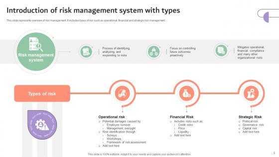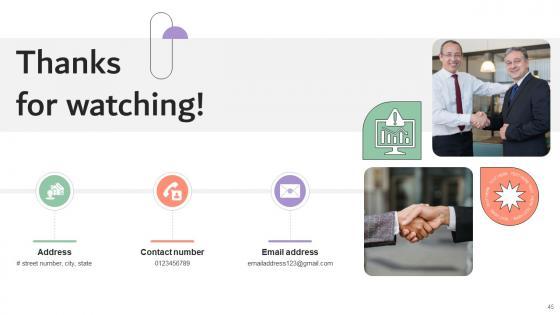 This presentation deck contains fourty five professionally designed templates that eliminate the hassle of creating visually appealing presentations for you. It is your perfect option to communicate your thoughts in an easy-to-understand and effective manner. This Company Risk Monitoring And Mitigation Approaches Ppt Powerpoint Presentation DTE CD V comes with a wide range of features like high-quality, graphics and 100 percent customizable layout. Graphs, charts, and polls are attention-grabbing visually interactive elements of this presentation bundle that will lock the eye of spectators on the screen. It also contains text styles, colors, background themes, and other design elements that perfectly complement each other and create a stunning template bundle. Take advantage of this PowerPoint Set to upgrade your presentation game and steer back your competitors. Our Company Risk Monitoring And Mitigation Approaches Ppt Powerpoint Presentation DTE CD V are topically designed to provide an attractive backdrop to any subject. Use them to look like a presentation pro.