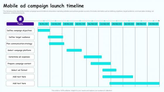 Mobile Promotion Strategic Guide For Micro Businesses Mobile Ad Campaign Launch Timeline Formats PDF