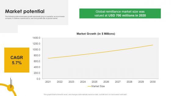 The following slide showcases growth opportunity lying in market for an ecommerce company. It outlines market size by year and growth rate of global market. Get a simple yet stunning designed Market Potential Mobile App Analytics Company Fund Raising Pitch Deck Topics Pdf. It is the best one to establish the tone in your meetings. It is an excellent way to make your presentations highly effective. So, download this PPT today from Slidegeeks and see the positive impacts. Our easy to edit Market Potential Mobile App Analytics Company Fund Raising Pitch Deck Topics Pdf can be your go to option for all upcoming conferences and meetings. So, what are you waiting for Grab this template today. The following slide showcases growth opportunity lying in market for an ecommerce company. It outlines market size by year and growth rate of global market.