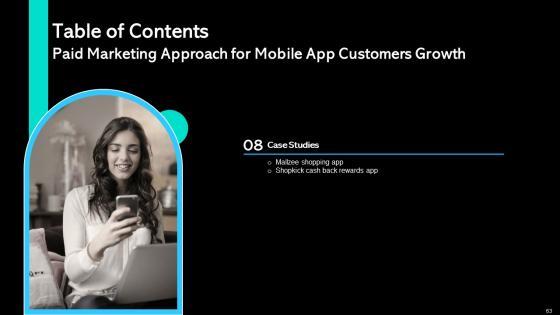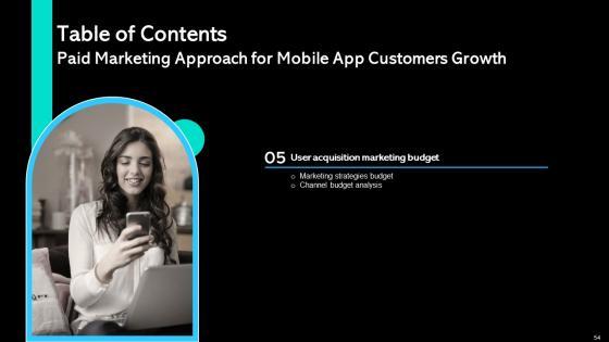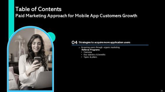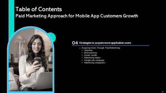 Explore a selection of the finest G209 Table Of Contents Paid Marketing Approach For Mobile App Customers Growth Topics Pdf here. With a plethora of professionally designed and pre-made slide templates, you can quickly and easily find the right one for your upcoming presentation. You can use our G209 Table Of Contents Paid Marketing Approach For Mobile App Customers Growth Topics Pdf to effectively convey your message to a wider audience. Slidegeeks has done a lot of research before preparing these presentation templates. The content can be personalized and the slides are highly editable. Grab templates today from Slidegeeks. Our G209 Table Of Contents Paid Marketing Approach For Mobile App Customers Growth Topics Pdf are topically designed to provide an attractive backdrop to any subject. Use them to look like a presentation pro.