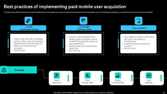 This incisive, comprehensive Paid Marketing Approach For Mobile App Customers Growth Ppt Powerpoint Presentation Complete Deck details important features of running a business. One learns about things like result areas, planning and strategic framework just a glance of this comprehensive deck of eighty slides. Use this PPT template to present your unique perspective of business technicalities and experience the way a good presentation can give new meaning to similarly-placed facts. Use this template to leave a roomful of people wondering at the expert you have gathered in closing a business deal. The completely editable and customisable nature of the presentation is a unique bonus. Download now. Our Paid Marketing Approach For Mobile App Customers Growth Ppt Powerpoint Presentation Complete Deck are topically designed to provide an attractive backdrop to any subject. Use them to look like a presentation pro.