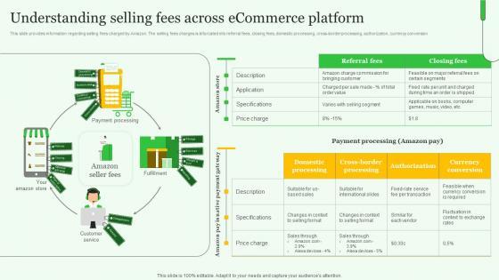 This slide provides information regarding selling fees charged by Amazon. The selling fees charges is bifurcated into referral fees, closing fees, domestic processing, cross-border processing, authorization, currency conversion. Are you searching for a Understanding Selling Fees Across Ecommerce Platform Ppt Model Ideas PDF that is uncluttered, straightforward, and original Its easy to edit, and you can change the colors to suit your personal or business branding. For a presentation that expresses how much effort you have put in, this template is ideal With all of its features, including tables, diagrams, statistics, and lists, its perfect for a business plan presentation. Make your ideas more appealing with these professional slides. Download Understanding Selling Fees Across Ecommerce Platform Ppt Model Ideas PDF from Slidegeeks today.